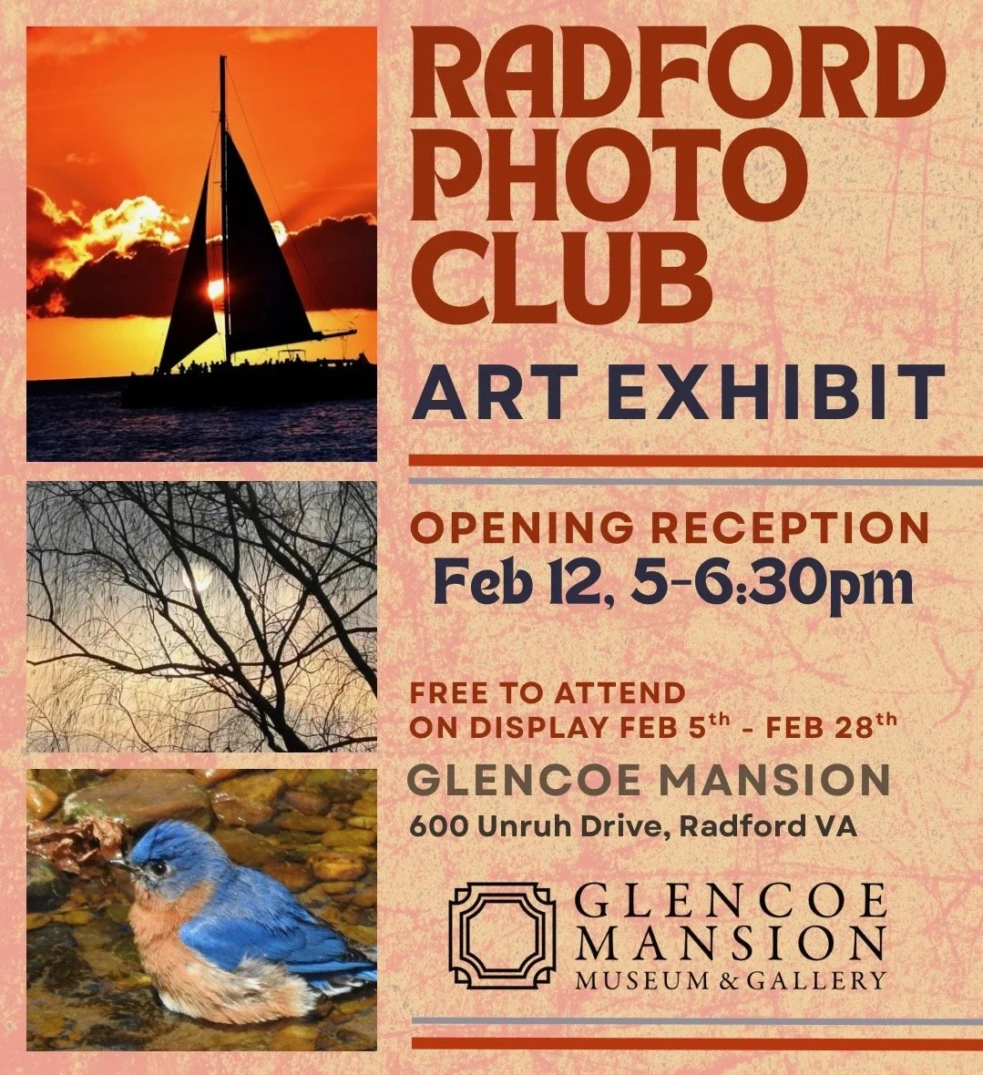 The Radford Photo Club is made up of professional and amateur photographers from throughout the New River Valley. The members meet monthly to share photographs, explore new techniques and subject matter and often create assignments to work on both as a group and independently. The club also hosts guest speakers, presentations, and educational workshops relating to photography.